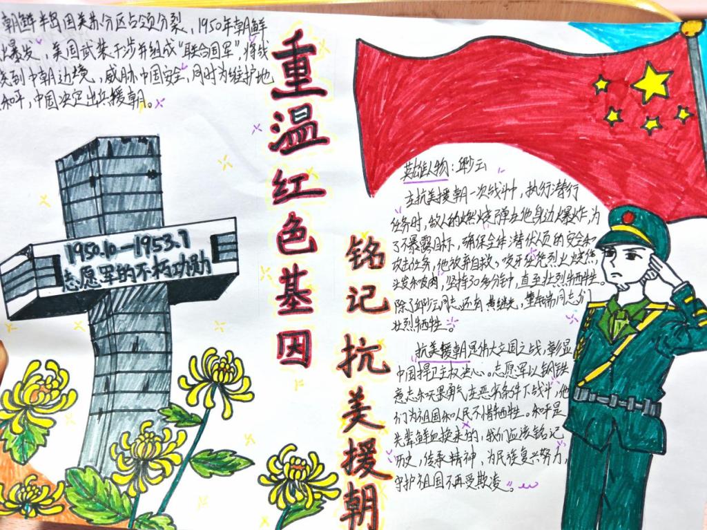 为纪念抗美援朝出国作战74周年,弘扬抗美援朝精神,激发学生爱国热情,10月25日,beat365官方网站开展“重温红色基因,铭记抗美援朝”手抄报活动。