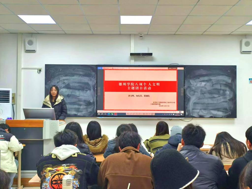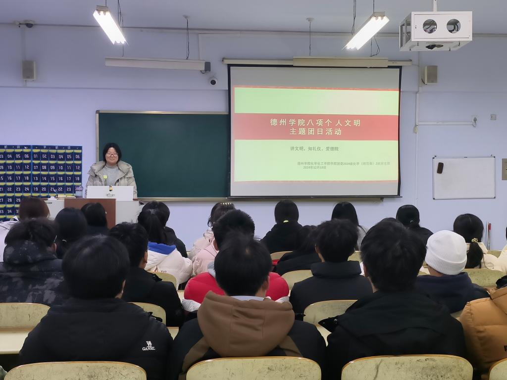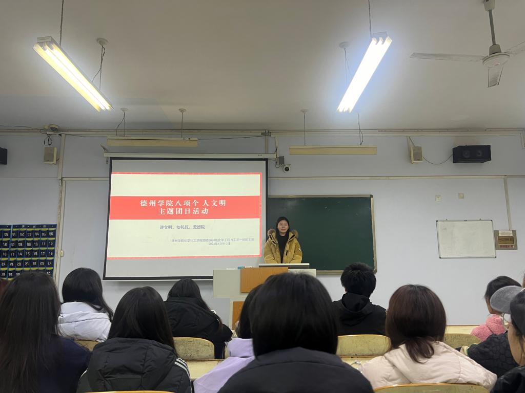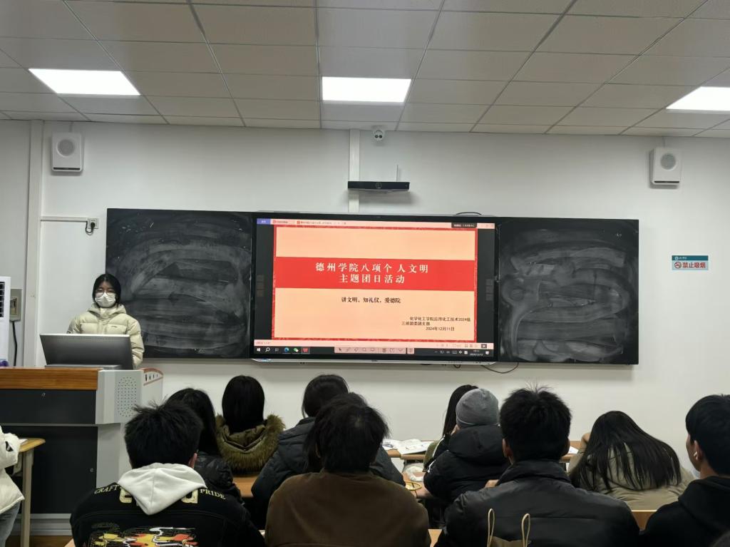 为贯彻落实党的二十届三中全会精神,加强beat365大学生思政工作,强化文明养成与校风学风建设。12月10日,beat365官方网站于求实楼开展“八项个人文明”主题团日活动。各班团支书主持,beat365官方网站全体学生参加。