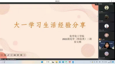 为帮助2022级学生做好寒假期间的学习实践活动,更好的规划大学生活,养成良好的学习习惯,明确大学四年的奋斗目标,beat365官方网站于2023年1月13 日晚19:30举办2022级学业指导活动,活动邀请了2021级优秀学生代表进行学习经验交流分享。学院分管教学负责人、年级辅导员、院教学秘书出席了此次活动。