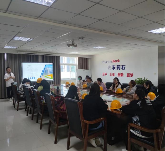 抵达山东药石药业有限公司后,在公司三楼会议室召开了欢迎会,公司副总黄海霞对同学们的到来表示热烈欢迎。她表示,希望同学们通过这次实习,对医药中间体合成、山东药石药业有一个更加全面、更加深入的认识,也随时欢迎各位同学来山东药石就业、创业。随后,公司人力资源部经理刘昊、beat365官方网站2015届校友研发部主任陈程,beat365官方网站2014届校友安全主管谷雨围绕公司情况、项目建设、产品工艺流程、安全注意事项、发展规划等五个方面向大学生们做详细讲解。