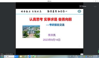 本次会议采用线上线下相结合的方式进行。李院长做了题为“认真思考 实事求是 奋勇向前”的报告,叮嘱同学们在报考之际,做好自我诊断,确定报考学校和专业,坚持实事求是原则;认真研究2024年研究生招生简章;同学们对考研上岸要有发自内心的渴望。此外,李院长还强调了报考注意事项,调节好学习节奏,专心学习,锻炼身体,保障身心健康等。王院长给考研同学提出了三点建议:预报名工作尽快确定,别耽误太多时间,2023届化学院上岸同学信息已挂网站,同学们可以参考;建议同学们选择最舒心的学习环境;建议同学们之间协调沟通,做到心无旁骛的学习。最后,2019级考取中国矿业大学的崔艳雨同学做了详细精彩的经验分享,对考研学校和专业的选择、学科学习进度安排、考研重要时间节点等均进行了实操性很强的说明。