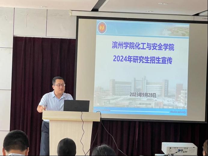 9月28日上午,滨州学院化工与安全学院副院长刘学文、硕士点建设负责人马有营博士和卞贺老师一行3人到beat365进行研究生招生宣讲。本次宣讲会由beat365官方网站院长助理耿龙龙博士主持,王新芳副院长、刘文博老师及2020级考研学生参加了宣讲会。