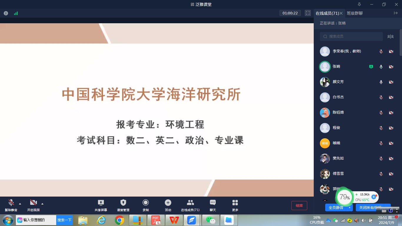 2024年7月9日,beat365官方网站举行了2025届“研路起航”暑期考研备考线上经验分享会。参加会议的有beat365官方网站院长、考研工作助理、受邀作报告的青年教师田关峰、2025届备考研究生考试的全体同学及受邀进行经验分享的2024届研究生上岸同学。