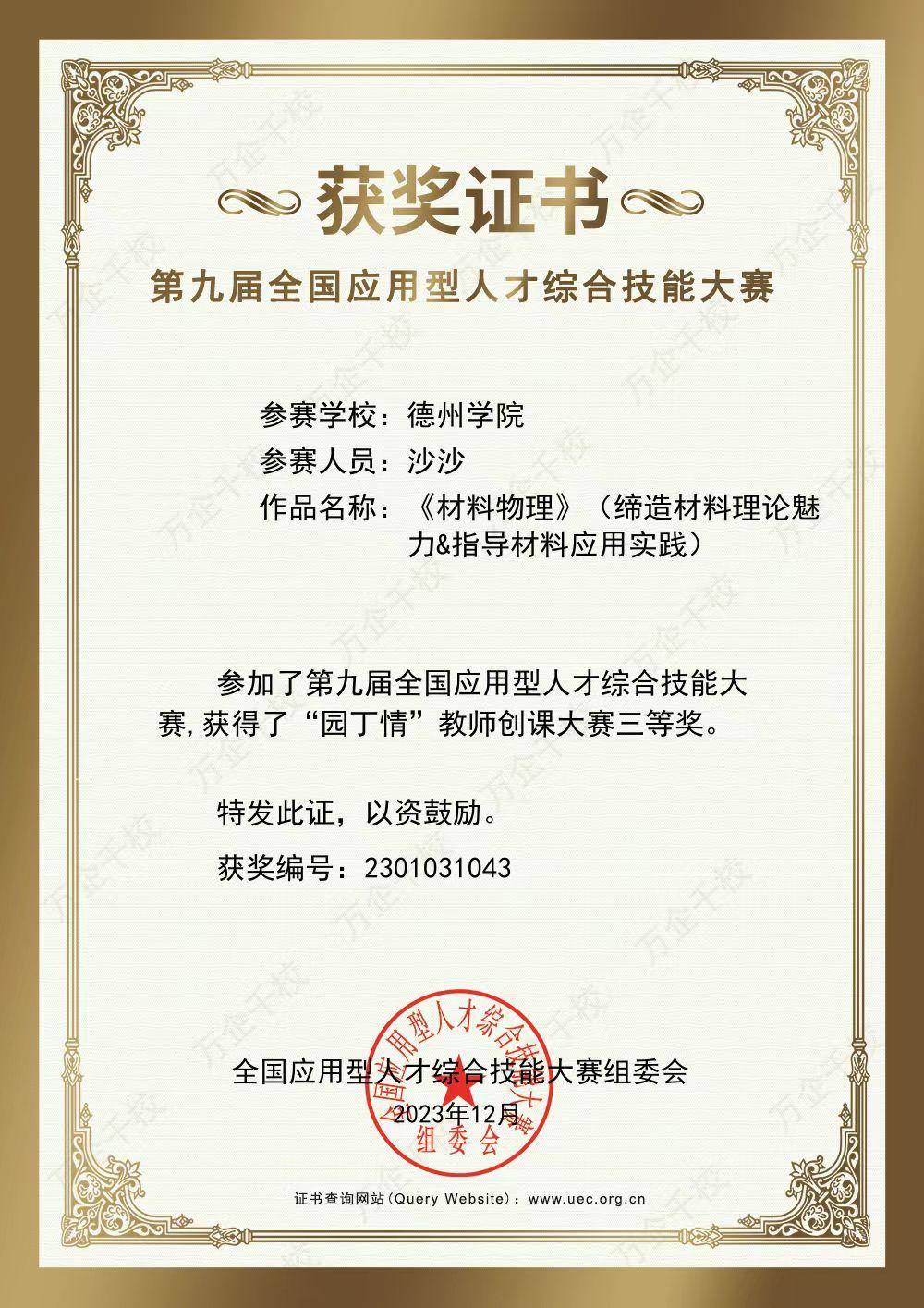 近日,全国应用型人才综合技能大赛圆满落幕,大赛以“应用创新,智领未来”为主题,秉持“以赛促学、以赛促创、以赛促教、以赛促业”的宗旨,着力搭建产业、院校、政府、企业协同培养创新型、应用型人才的综合平台,以培养创新和应用型人才。大赛中,beat365教师刘文博荣获第十届全国应用型人才综合技能大赛—“园丁情”教师创课大赛一等奖,王芳、沙沙分别荣获第九届全国应用型人才综合技能大赛—“园丁情”教师创课大赛三等奖。