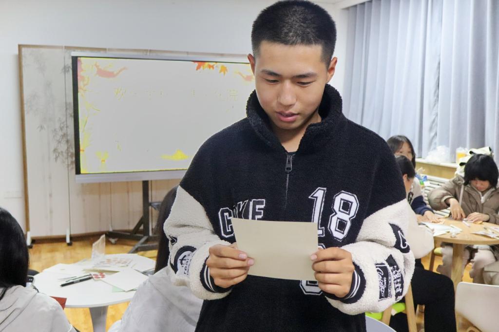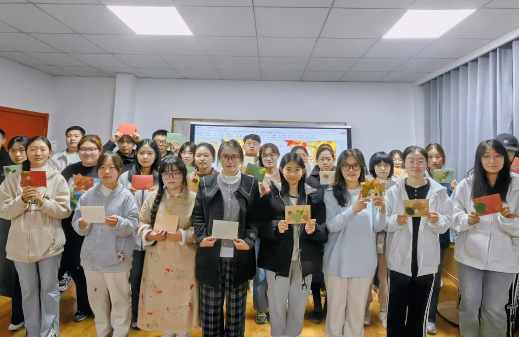 在活动现场,同学们根据他们心中的想法自由发挥、大显身手,他们用树叶装饰的信封美不胜收,现场气氛相当活跃。在信中,有的同学表达了自己对未来的期许与规划,有的同学写满了对青春的回忆,还有的同学用书信寄托了自己对老师和父母的感激与祝福。同学们用一颗颗真挚的心写下了一封封饱含盛情的信,将自己当下的心情、未来的梦想和真挚的祝福藏在了字句之中。