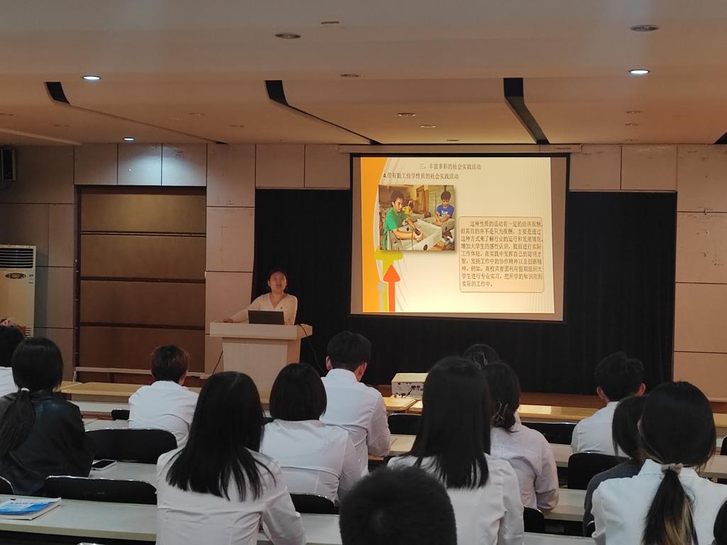 主讲人围绕“社会实践”主题,就“大学生社会实践活动的概述”“社会实践活动的设计与开展”两个方面介绍实践活动。随后,详细介绍了“百万大学生进社区”、“青鸟计划”、大学生暑期“三下乡”等社会实践项目,展示了“beat365官方网站“正青春社会实践志愿服务队”、“清水绿滩一叶舟”暑期社会实践队取得的实践成果,鼓励同学们积极参与到社会实践与志愿活动中,为建设繁荣富强中国贡献自己的力量。