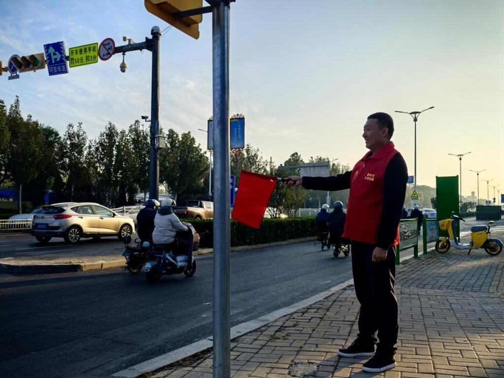 执勤期间,志愿者们身穿红马甲,以饱满的热情投入到这次活动中,用实际行动倡导文明交通,共筑安全防线。志愿者们不仅对交通路口的车辆、行人违规行驶行为进行及时劝阻,还对周边卫生环境进行了整治。他们提醒骑乘电动自行车的市民要正确佩戴安全头盔,自觉抵制交通陋习,时刻牢记遵法出行,确保自身及他人安全。 此次教师党员路口志愿者服务活动不仅增强了群众的交通安全意识和文明意识,还充分发挥了广大党员干部在服务群众、凝聚人心中的先锋模范作用。