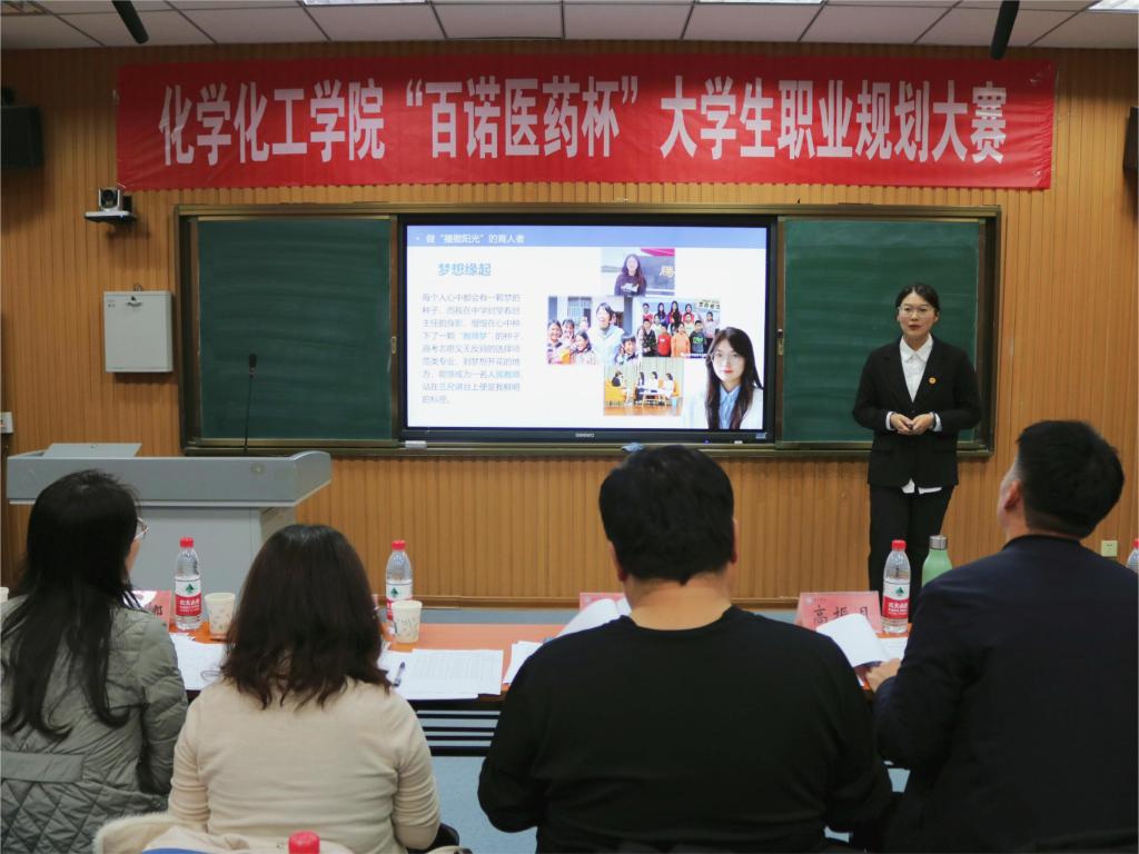 为贯彻落实学校《关于举办beat365官方网站大学生职业规划大赛的通知》要求,加强学生生涯教育和就业指导,引导学生树立正确的成才观、就业观和择业观,提升学生就业竞争力,11月13日,beat365官方网站联合百诺医药集团于厚德楼413教室举办了“百诺医药杯”大学生职业规划大赛决赛,就业指导处副处长、百诺医药集团相关负责人、beat365官方网站党委书记、副书记及辅导员担任本次大赛评委,70余名学生代表到场观摩比赛。