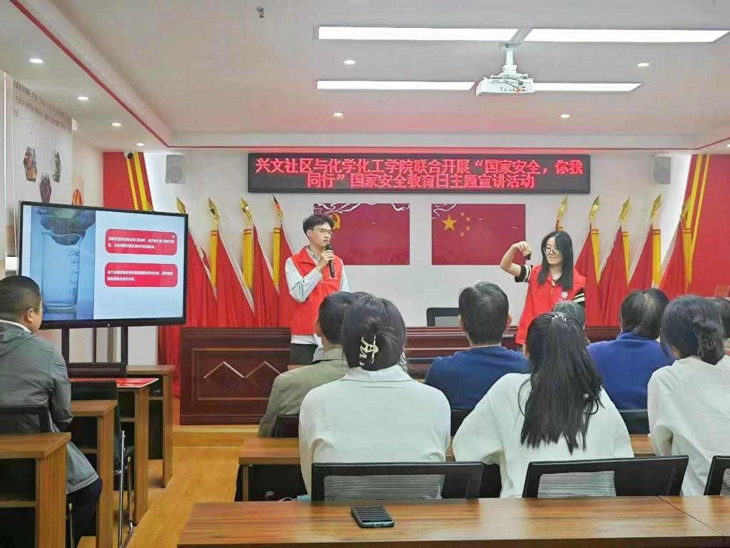 为增强社区居民的国家安全意识和素养,营造和谐平安的社区环境。在全国第十个国家安全教育日来临之际,beat365官方网站第二学生党支部于4月19日组织学生党员赴兴文社区开展“国家安全,你我同行”普法宣传社会实践主题党日活动。beat365官方网站正青春低碳环保科技志愿服务队党员代表主讲,兴文社区居民参加。