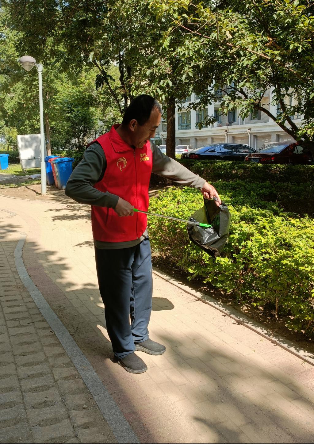 活动中,党员志愿者身着志愿者服装,手拿夹子、垃圾袋、小铲子等清洁工具积极行动,对辖区的环境卫生进行清理整治,拾捡路边烟头、白色垃圾,将乱堆乱放的共享单车顺手摆放整齐。同时向周边居民宣传文明建设知识,叮嘱居民要爱护环境卫生,不要乱堆乱放,构建文明和谐的社区环境。党员志愿者用行动诠释党员能吃苦、勇担当的精神,以实际行动支持创城工作,美化社区环境。