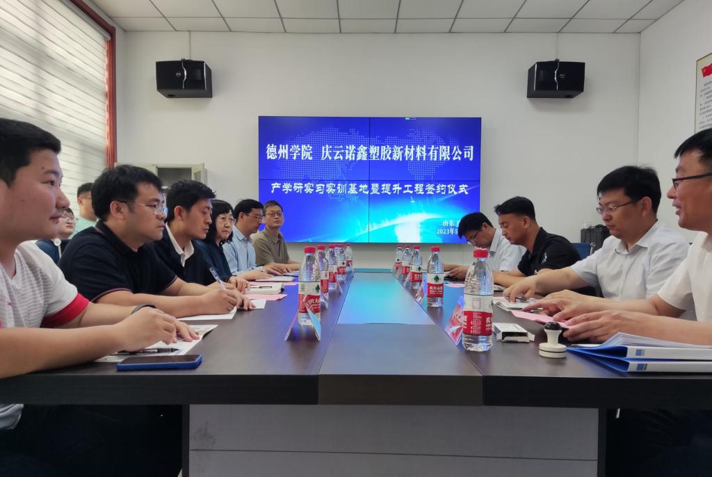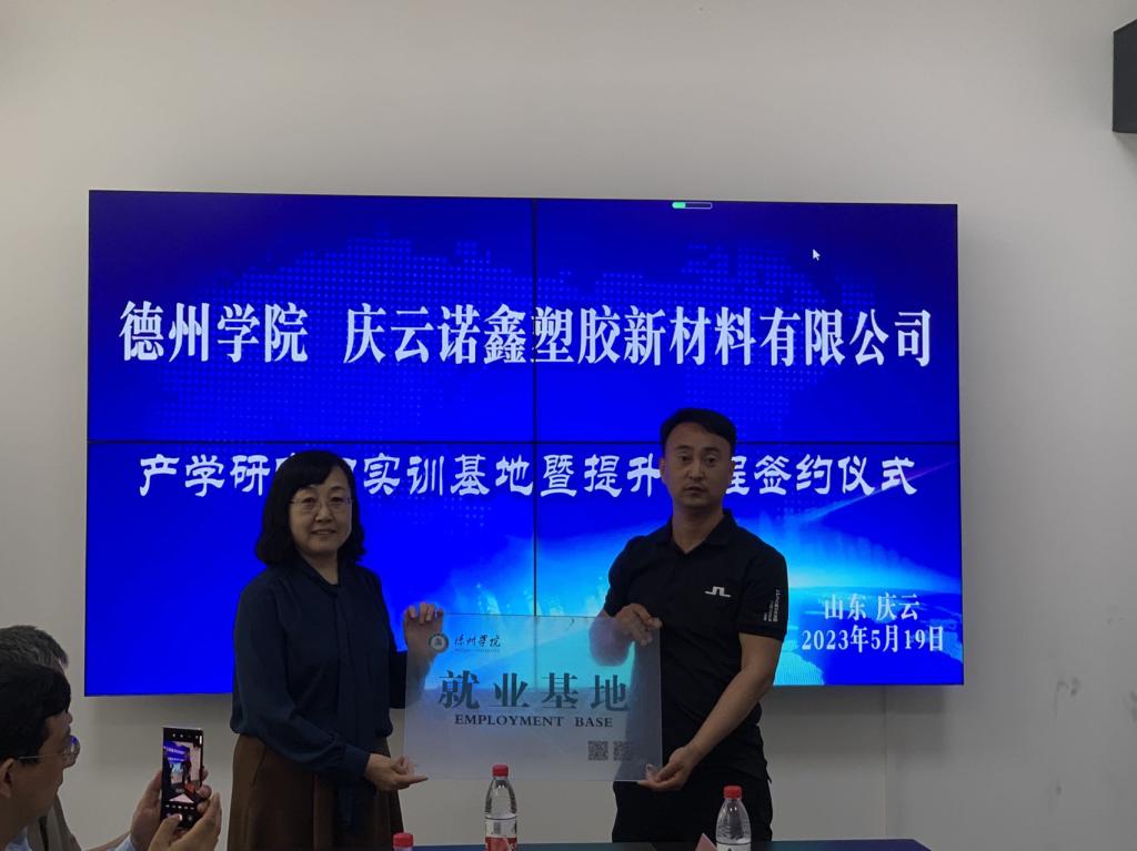 活动中,一行人实地参观了庆云诺鑫塑胶新材料有限公司的生产车间、新厂房建设和产品展区等,公司车间主任为学生讲解公司的主要产品。在座谈交流环节,第三教师党支部教师们分别介绍研究方向,希望通过本次活动,加强同庆云诺鑫塑胶新材料有限公司的技术交流,共同解决产品生产中的技术难题,并希望校企双方以党建为切入口,拓宽毕业生就业创业渠道、培养一批实干人才服务地方企业。公司主要负责人介绍公司的创业历程及相关的产品知识,希望双方不断深化务实合作,通过开展学生实习、毕业实践等一系列活动,加强同beat365官方网站的合作。会后,beat365官方网站学院与庆云诺鑫塑胶新材料有限公司进行就业实习基地的授牌仪式,并签订《beat365官方网站就业基地共建协议书》。