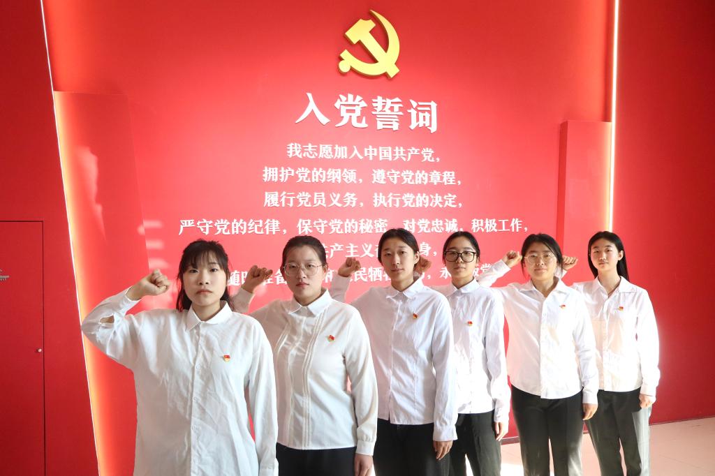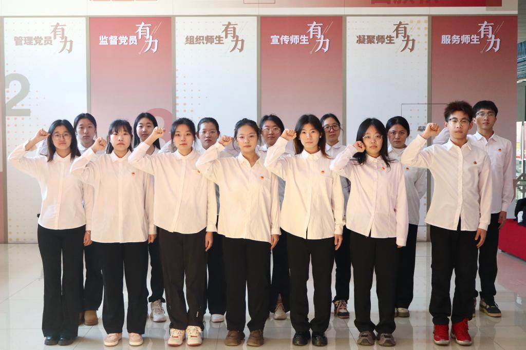 活动中,学生党员深入展厅,聆听党的光辉成就、历史经验和优良传统。学生党员们佩戴党徽,重温入党誓词,表达对党的忠诚和坚定不移的理想信念。