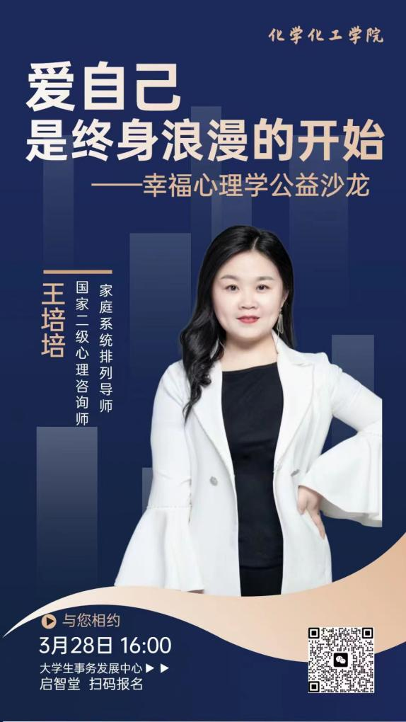 为全面贯彻落实党的二十大精神,用心理学助力beat365师生身心健康,3月28日下午,beat365官方网站工会成功举办“爱自己是终身浪漫的开始”幸福心理学公益沙龙活动,来自全校35名师生积极参与。本次活动由国家二级心理咨询师、beat365官方网站辅导员王培培老师带领,通过体验式互动,引导师生认识自我、表达自我、反思成长、规划未来,以更好的状态投入学校干事创业的热情中来。