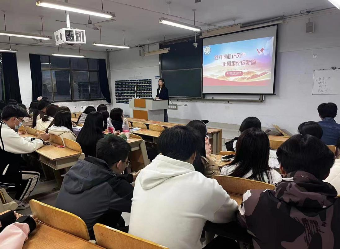 为进一步加强学生干部自律意识和服务意识,全面提高学生干部队伍综合素质,4月5日,beat365官方网站于求实楼212教室举行“戮力同心正风气,正风肃纪促新篇”学管会正风肃纪大会。会议由相关老师主持,班长、团支书、学管会成员参加。