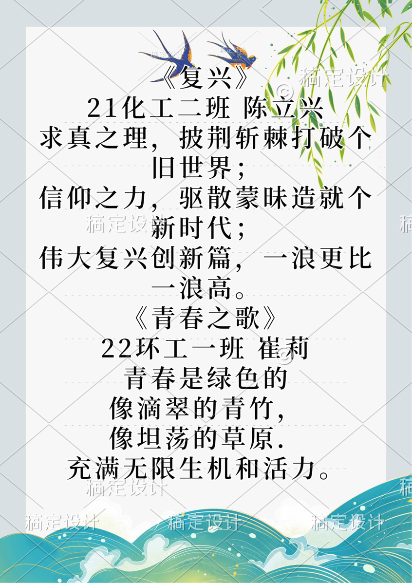 活动一开始便得到同学们的积极参与,期间共征集到200余首作品。同学们妙笔生花,把自己的真挚情感通过三行诗书写出来。文字虽短,却表达出了化院学子对生活的热爱、成长的困惑、青春的思索、美好的祝愿。经过层层筛选,最终评选出一等奖4名,二等奖8名,三等奖15名,优秀奖若干。