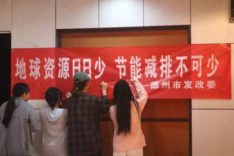 围绕“地球资源日日少,节能减排不可少”主题,德州市发展改革委员会科长杨志致辞,介绍德州市环保产业发展状况及趋势,鼓励同学们培养创新精神,努力学好知识,争取投身环保行业,为环保事业发展贡献青春力量。德州环保产业协会秘书长田松林致辞,表示环境监测、环境影响评价等在企业生产中的重要地位,青年学生在环境保护中承担着重要使命。德州天洁环境影响评价有限公司、德州广源环保科技有限公司、山东金诚检验检测认证有限公司三家环保行业标兵企业分别介绍企业的运行情况及对环保人才的需求,鼓励同学们学知识,长本领,增见识,为国家的环保事业作出贡献。