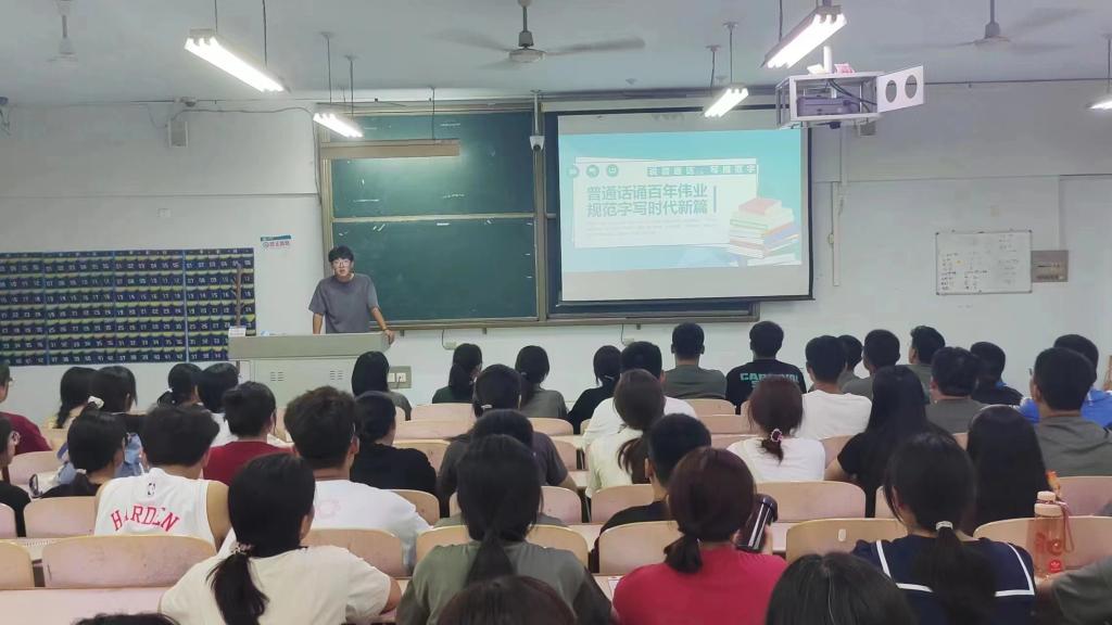 为大力推广和规范使用国家通用语言文字,提高全院学生的语言文字规范意识和用语用字规范化水平,9月11日,beat365官方网站召开“普通话诵百年伟业,规范字写时代新篇”普通话推广讲座。2023级全体新生参加。