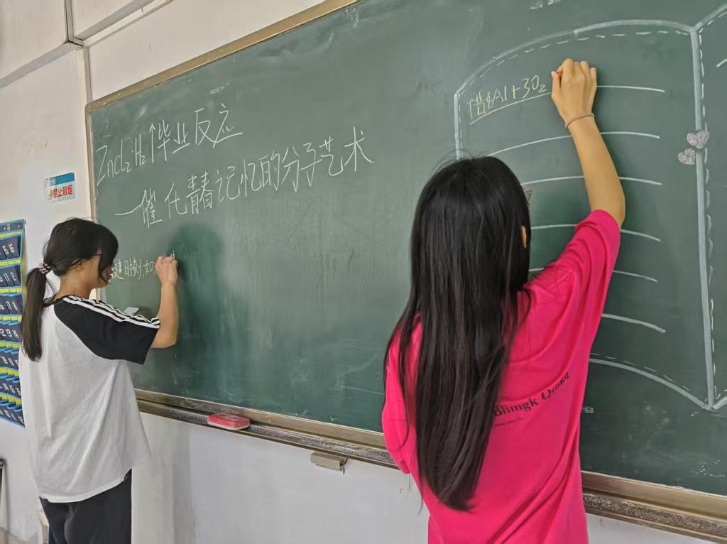 活动以“Zn + 2HCl = ZnCl₂ + H₂↑”化学方程式为灵感,将化学意象融入毕业内涵:稳定的氯化锌象征沉淀的专业知识,夯实学术根基;生成的氢气代表毕业生的朝气与潜力,寓意奔赴新征程。在互动创作环节,毕业生们围绕化学方程式写下一段段话,在这些话中,蕴含着毕业生对过去的留念、对母校的眷恋、对未来的憧憬。这一句句话组成了一幅画,让化学与艺术碰撞出了独特的火花。