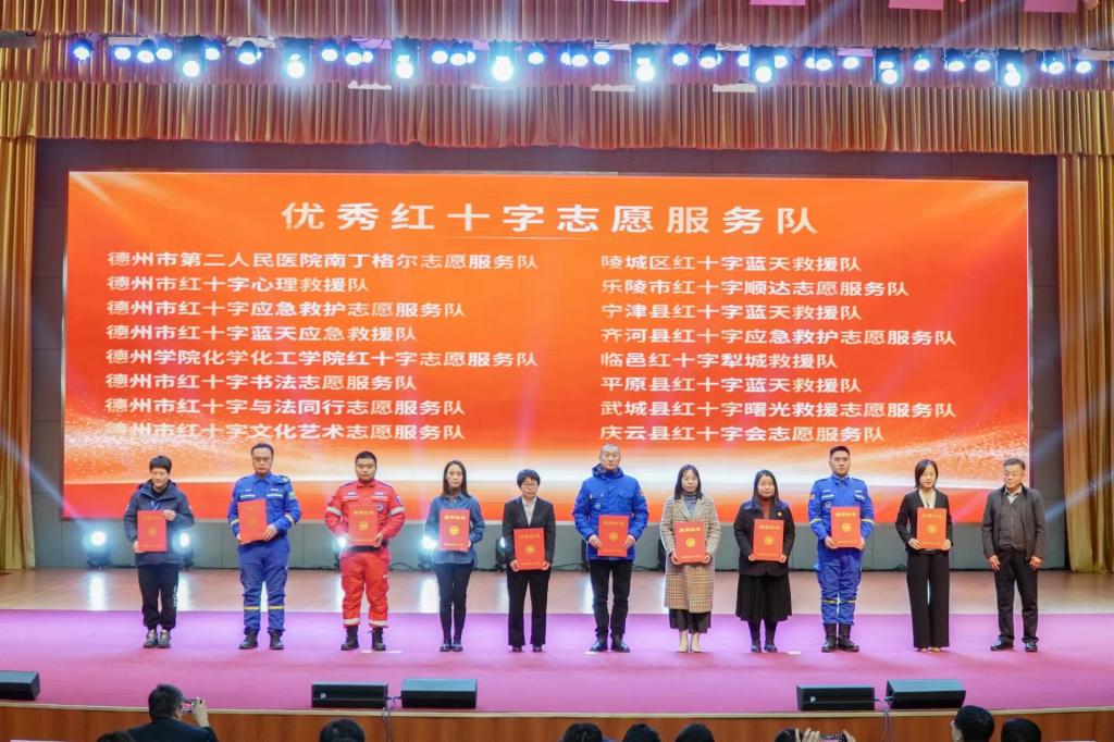 为进一步弘扬红十字志愿服务精神,推动红十字事业高质量发展,12月21日,德州市红十字会第五届理事会、监事会第二次会议暨全市红十字志愿服务大会在会展中心如期召开。beat365官方网站红十字志愿服务队荣获德州市红十字“优秀志愿服务队”称号,服务队队长董玲、队员杨延坤荣获德州市红十字“优秀志愿者”称号。