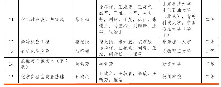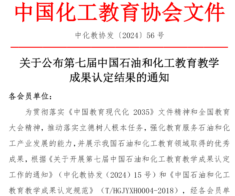 据悉,中国化工教育协会举办的第七届中国石油和化工教育教学成果认定活动,旨在表彰和推广在石油和化工教育教学领域取得突出成果的项目和个人。本次中国化工教育协会共收到来自高等本科院校、职业院校、企业和国家开放大学等会员单位500余项教学成果,最终认定本科院校优秀教学成果84项、教研论文39项、优秀教材25项。