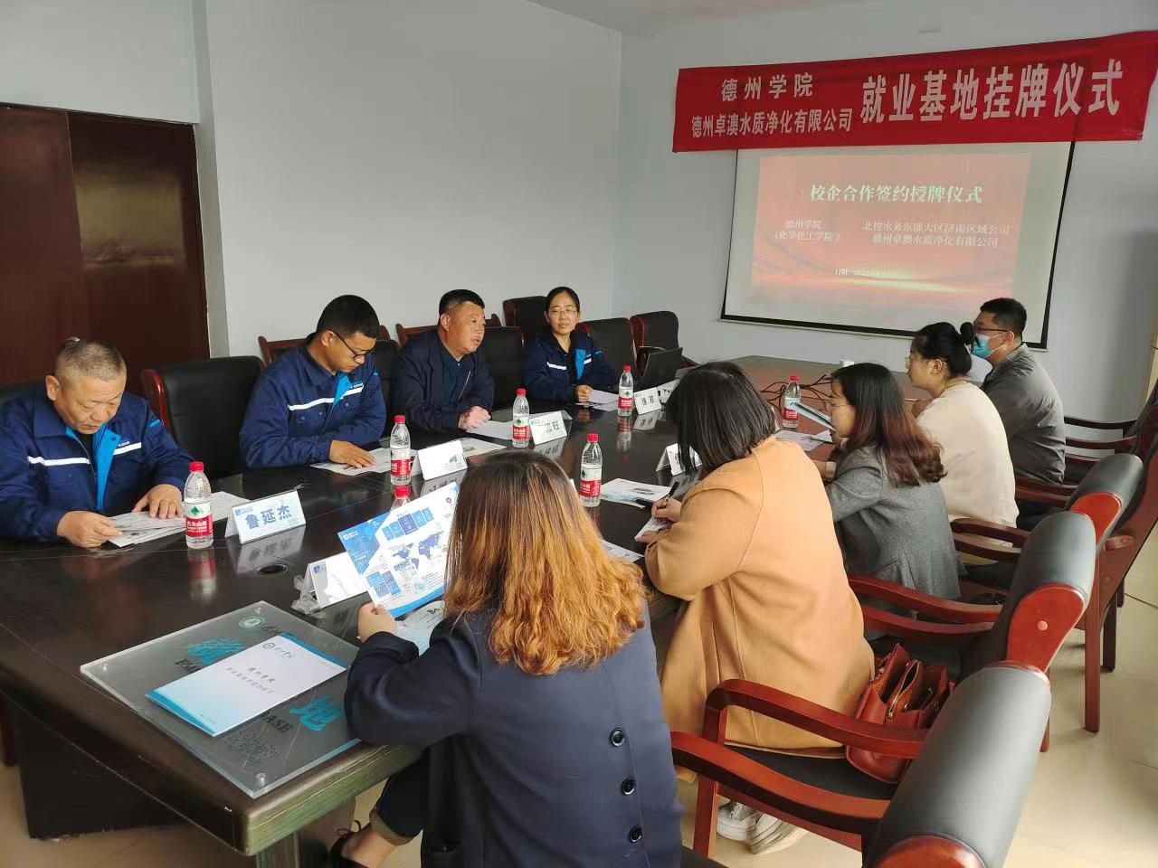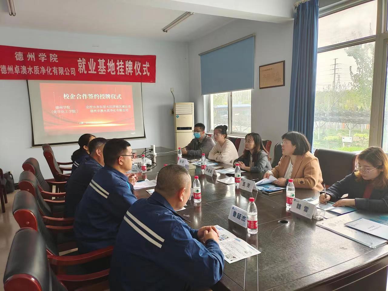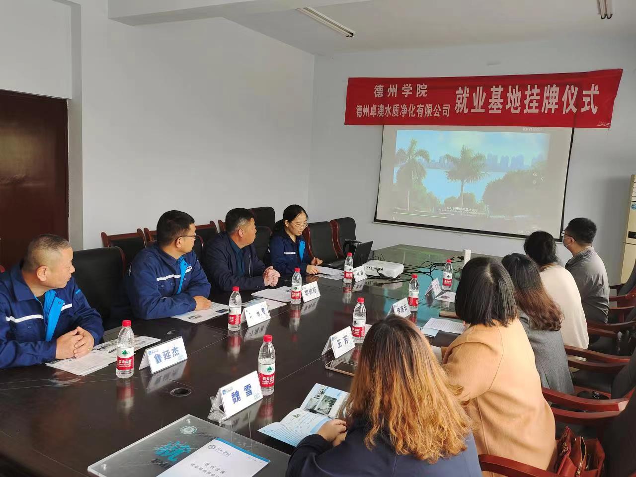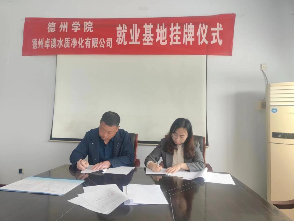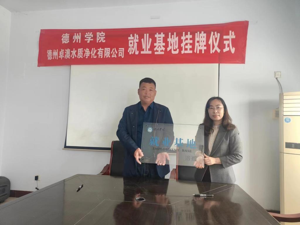 4月14日,beat365官方网站深入开展“访企拓岗”促就业系列活动,与德州卓澳水质净化有限公司举办就业基地挂牌仪式。beat365官方网站党委书记、系主任、辅导员,德州卓澳水质净化有限公司总经理等相关负责人参加仪式。