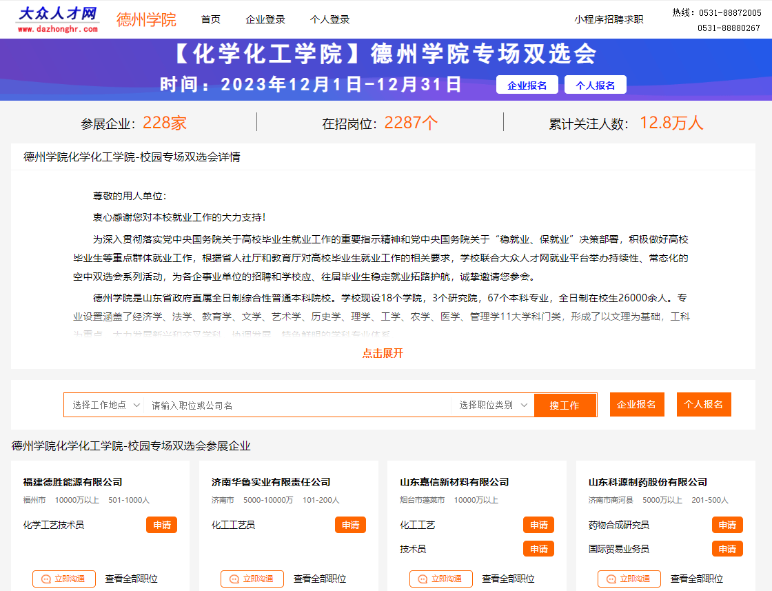 本次双选会采用“大众人才网”网上报名方式,之前未在大众人才网平台注册过的企业和个人需先进行注册完善信息后再报名参与,注册网址www.dazhonghr.com