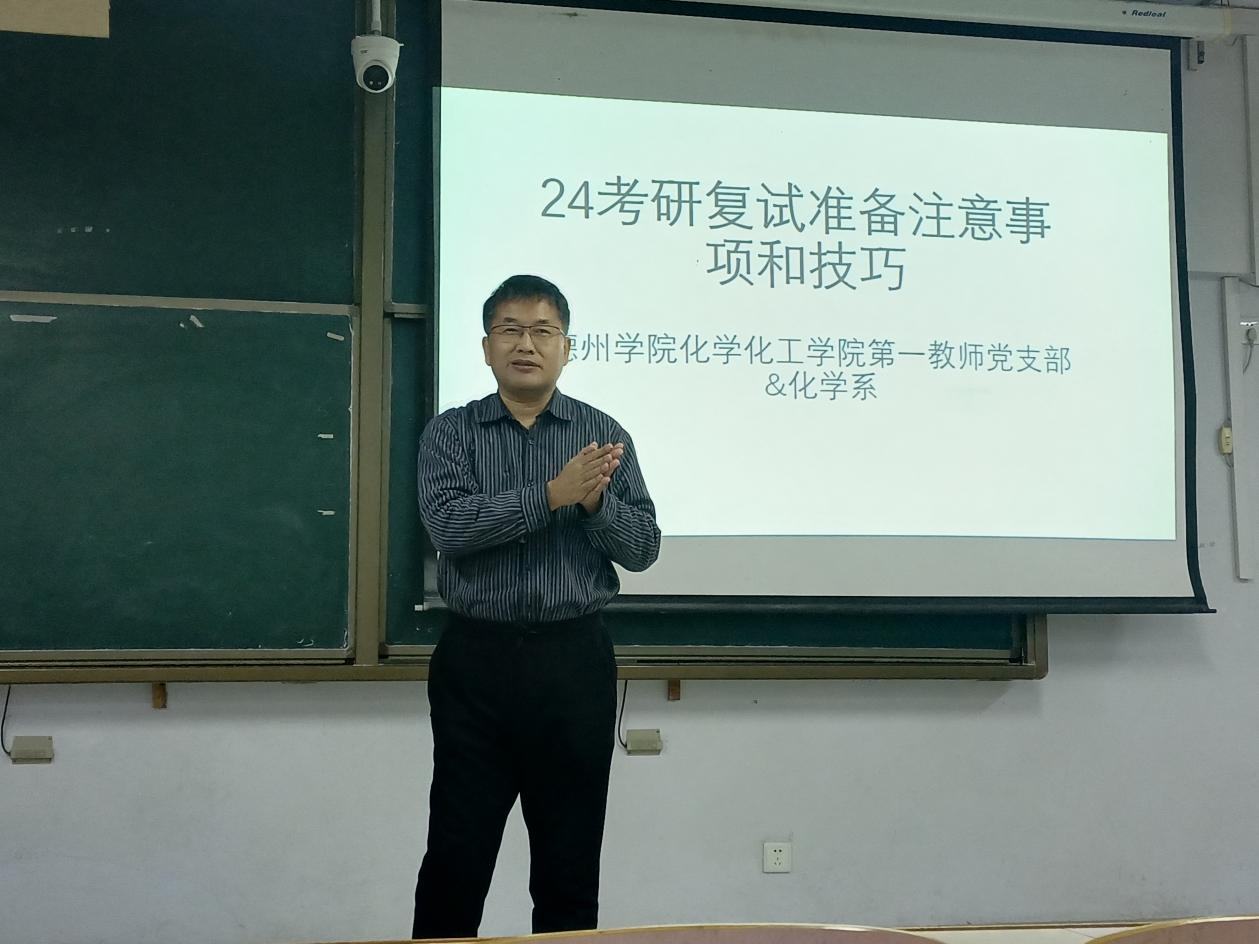 2024年beat365官方网站化学专业考研上线率再创佳绩,达到51%,为了提高复试成功率,beat365官方网站第一教师党支部(第三批全国党建工作样板支部培育创建单位)和贾春晓书记工作室(第二批全省高校“双带头人”教师党支部书记工作室培育创建单位),提前筹划、精心组织,从2月28日考研分数公布至今,组织了一系列活动助力学生考研复试。
