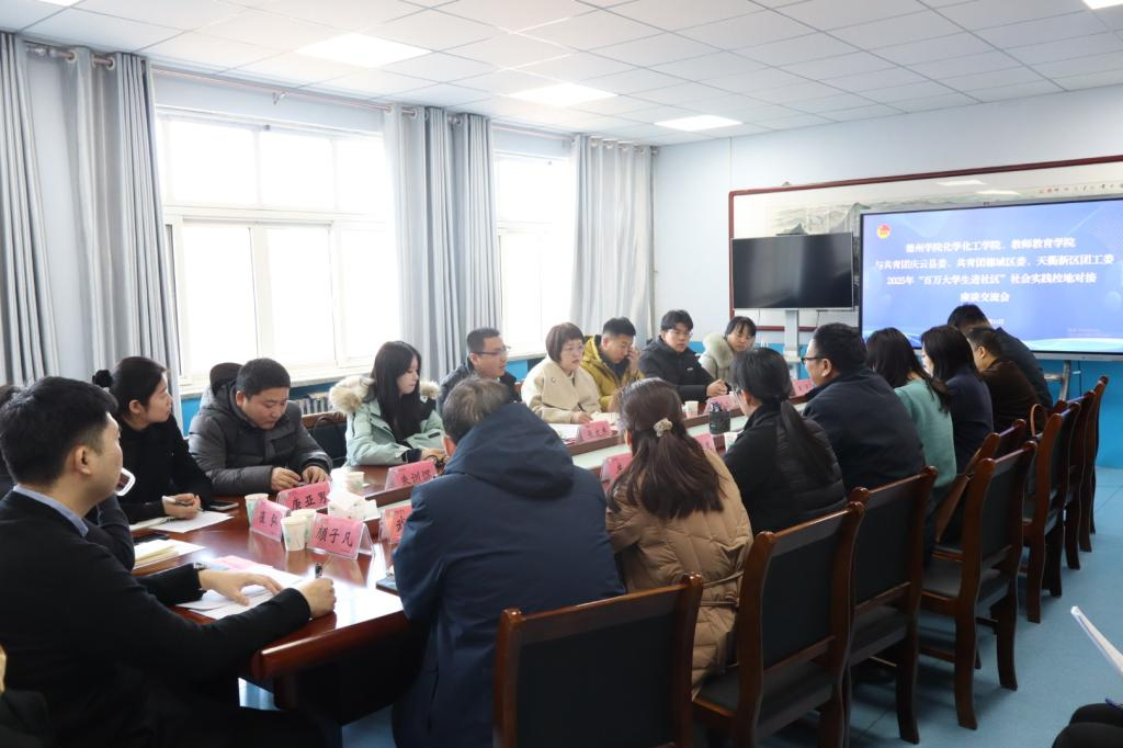 为深入推动校地资源共享、优势互补,助力大学生实践成长与地方经济社会发展,2025年2月23日,beat365官方网站全国高校“双带头人”教师党支部书记“强国行”专项行动团队与共青团庆云县委开展2025年“百万大学生进社区”社会实践校地对接座谈会。庆云县团委主要负责同志、beat365官方网站党政领导班子成员、专项行动团队部分成员参加会议。